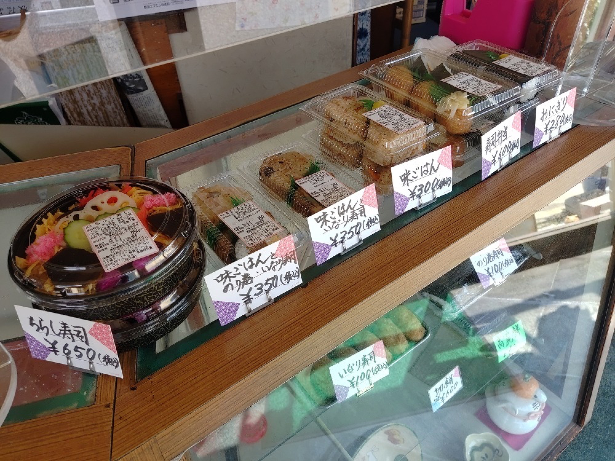 餅菓子、特にお団子がおいしいと評判です。おにぎりやいなし寿司、太巻きなどのご飯ものもご好評いただいております。ぜひ、ご来店をお待ちしております。